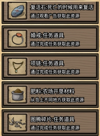 4、复活石、婚戒、项链、肥料、图腾碎片;