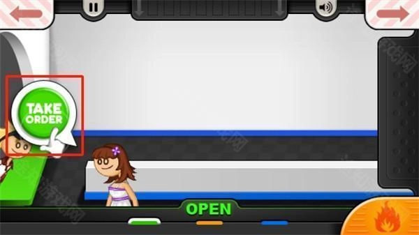 5、门打开后,会有顾客前来购买食物。这时,我们点击【take order】与顾客交谈,以了解他们的需求。