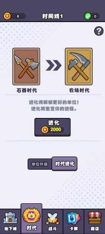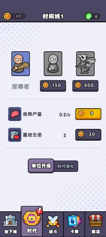 5、消耗金币以提升食物获取速度、增加基地生命值,并解锁全新兵种
