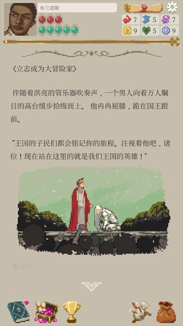《lifeinadventure汉化版(冒险生活)》是一款剧情导向的文字角色扮演(RPG)游戏。玩家做出的不同选择,会使故事走向、角色属性等产生变化。游戏以中世纪为背景,你将在此开启与众不同的Roguelike之旅。丰富多元的选择搭配细腻的像素画面,令人喜爱不已。