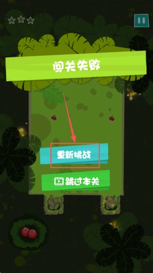4、最后,要是只获得“”且显示“闯关失败”,可以点击“重新挑战”再次尝试,也能选择“跳过本关”进入下一关。