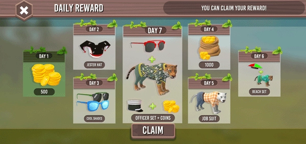 1、踏入游戏后,第一步能参与每日签到活动来领取福利,持续签到能够解锁像稀有虎纹皮肤之类的装扮道具,这些道具凭借狩猎成就可永久留存。