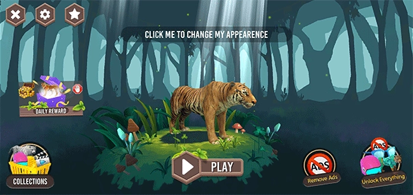 2、游戏初始角色为无装扮的老虎,拥有装扮后可点击角色进行外观定制,支持调整虎耳、爪甲等细节,完成后点击开始游戏进入冒险。