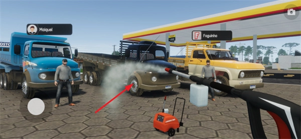 5、还能使用工具清洗一下卡车,当然也能及时的加油。