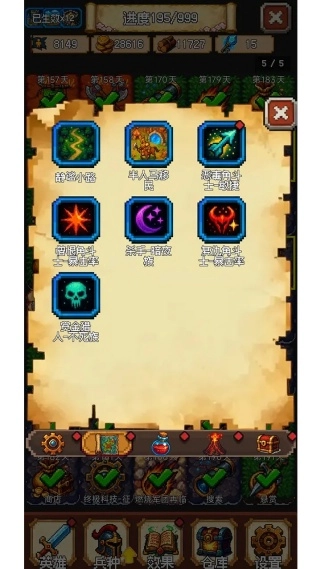3、备战守塔决战,通过打野提升英雄等级解锁技能,收集地下城玥石挑战高难度副本获取资源,强化兵种与科技应对周期性对抗。