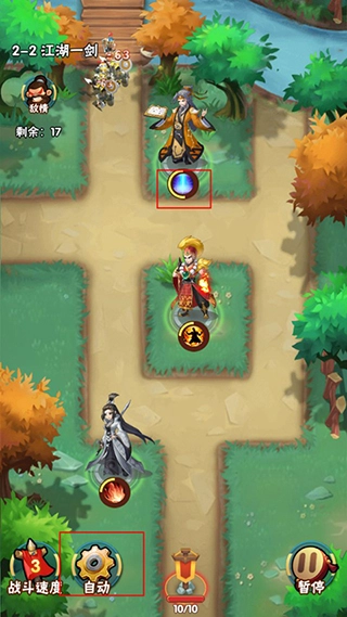 侠客们进入关卡挑战后,会自动攻击敌人展开防守,同时逐步积攒能量;能量满格后即可释放,玩家既能手动操作释放,也能点击自动模式来解放双手。