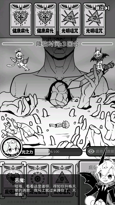 《天使模拟器》是一款采用黑白画风的卡牌角色扮演游戏。玩家在游戏里将化身刚被调至救赎部的天使,在游戏世界中持续执行轮回救赎任务。每个任务里,玩家都会遇到一位命运多舛、寿命短暂的倒霉鬼,此时需要借助手中的卡牌,在他遭遇危险之际伸出援手,使其免遭伤害。玩家的目标是让这个倒霉鬼存活更久,存活时间越长,自己所能获得的收获也就越丰厚。