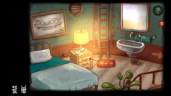 先打开台灯下方最上面的那个抽屉,之后再点击挂在墙面上的镜子。