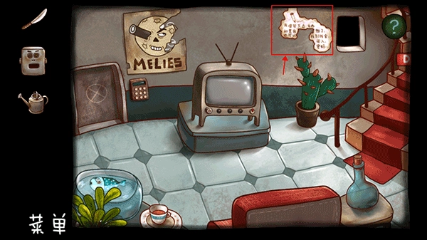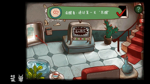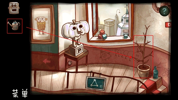 用锤子砸碎玻璃瓶可以得到虫子。第一道门锁的解锁方式如图所示。把虫子喂给白菜头,会露出隐藏的开关,用这个开关就能打开第二道门。