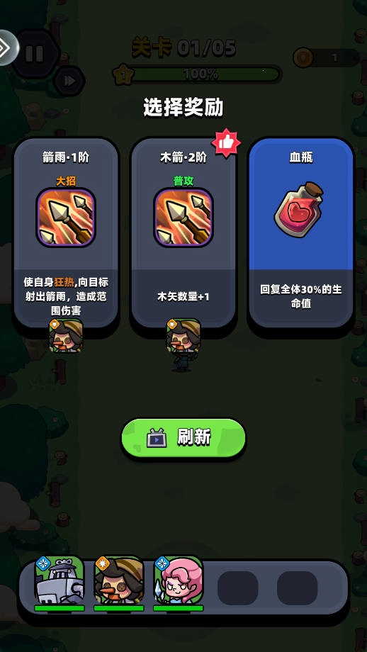 每次击败敌人都能积累珍贵的战斗经验,推动经验条持续提升,靠近箱子会自动打开,等等级进度条填满后,就能挑选奖励了。