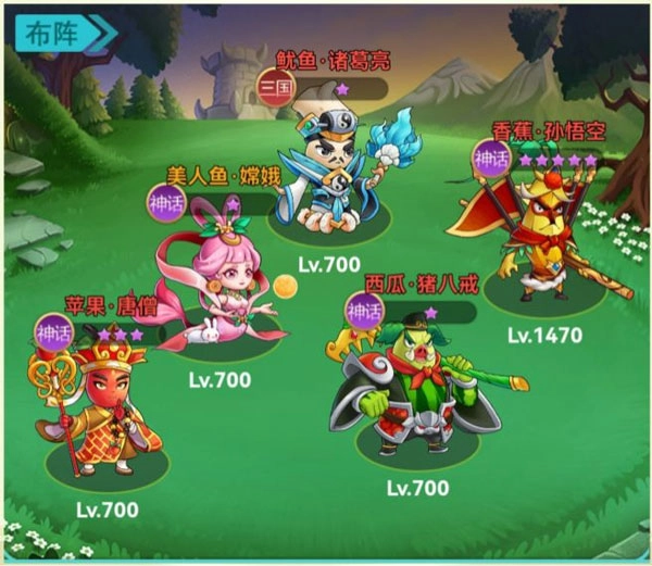 这套队伍的构建逻辑是采用四位神话级角色搭配一位三国系列角色的组合形式,核心目标在于兼顾强力的输出能力与稳定的控制效果。