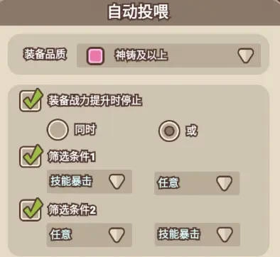神铸完成后,若想筛选出自己心仪词条的装备,该怎么做呢?其实方法很简单,只需对自动投喂的设置稍作修改就行。