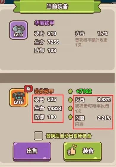 2、当获取到同类型装备时,玩家能够依据战力的差异,自主决定是佩戴该装备,还是直接将其出售,以此灵活地对战斗配置进行调整。