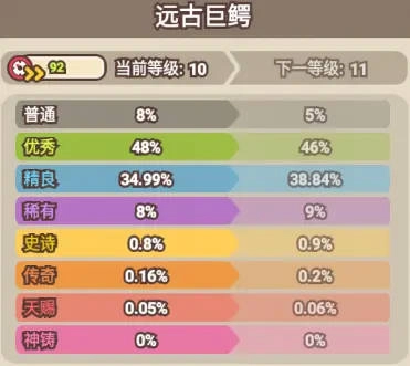 在游戏里,鳄鱼产出装备的品质与鳄鱼等级紧密相连。所以,若想获取更优质的装备,就必须尽可能提升鳄鱼等级。要知道,在鳄鱼等级较低时,即便开启再多兽肉,也无法产出高品质装备。