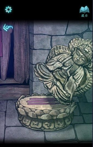 通过地板上的图案提示调整雕像的摆放姿态,得到一捆香后,把它放进香炉里。