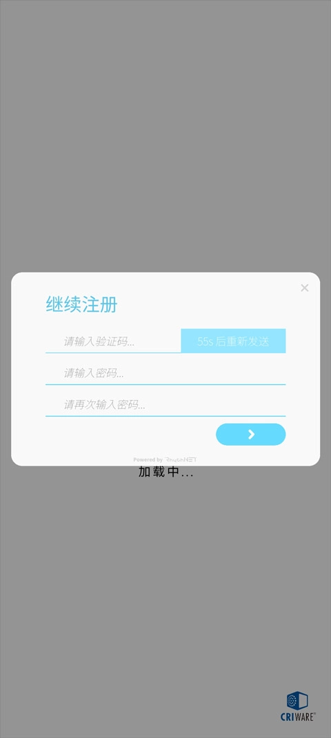 2. 接着填写验证码并设置密码,点击右下方箭头,就能注册成功。