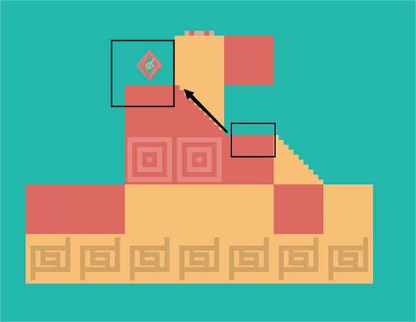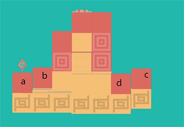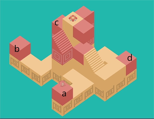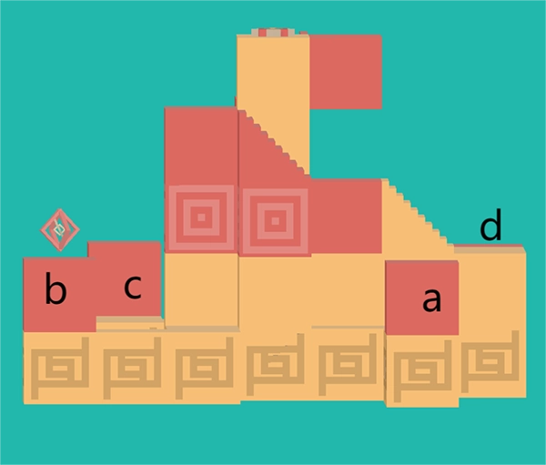 按照相同的操作方式转动画面,切换不同视角,移动至最终的高层红色区域。