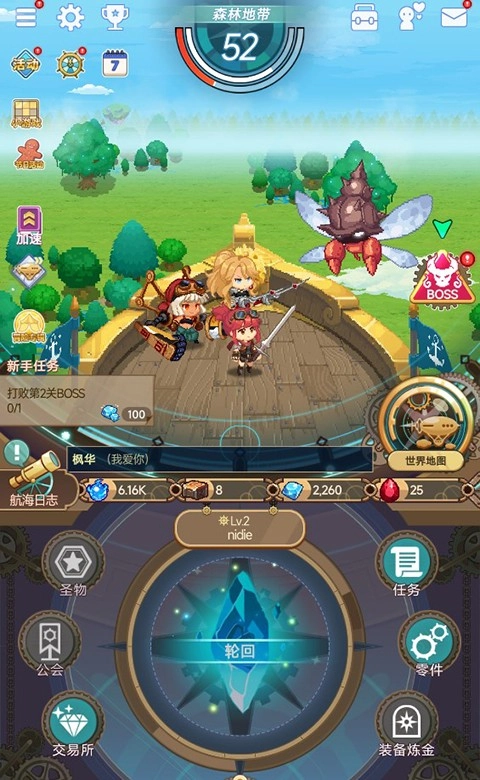 进入游戏后,玩家会驾驶飞船与船员并肩作战,对抗所有拦路的怪物,点击右侧还能发起BOSS挑战。
