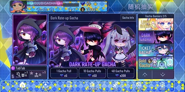 进入Gacha Star加查之星游戏后,游戏初始界面显示为英文,我们首先需要将其设置为中文,操作方法是点击右下角的按钮。