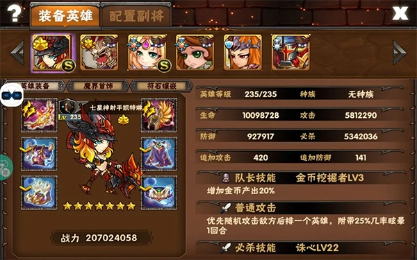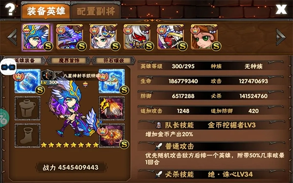 后期英雄的搭配方案,VIP玩家不必参考,毕竟他们的核心是VIP专属英雄;普通玩家可以借鉴这个思路。这里说明一下选择大甜心的原因:主要是因为她血量厚实、控制能力强,能轻松压制那些英雄还没+5的玩家。