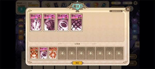 回到城区后,发现事件期间魔法卡合成费用打五折,于是合成了一张金色品质的卡片。前期阶段使用这些魔法卡来平稳度过,而当合成出金色或紫色品质的卡片时,它们会附带两个宝石镶嵌槽,通过镶嵌宝石能够显著增强卡片的整体实力。