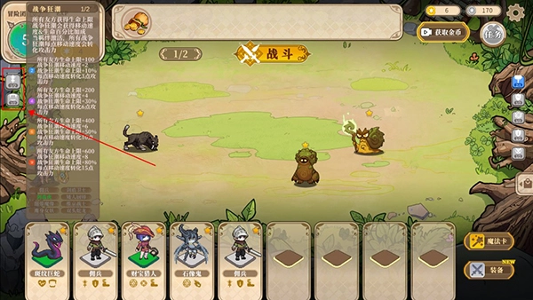 不同的卡牌角色组合会触发独特的联动效果,左侧面板可以查看具体的能力详情,灵活搭配阵容能让策略发挥得更出色。