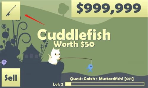 6、当等级升级到2级时,点击左上角的鱼竿图标。