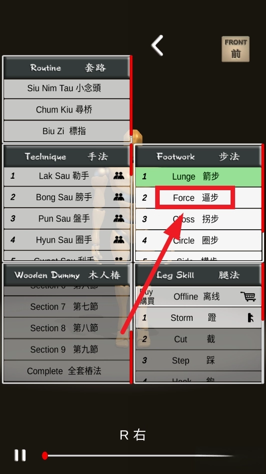 选择自己想要学习的招式