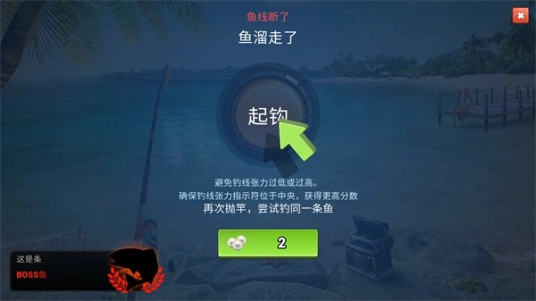 3、玩家可以慢慢的收线,将鱼的耐力耗光就能钓上。