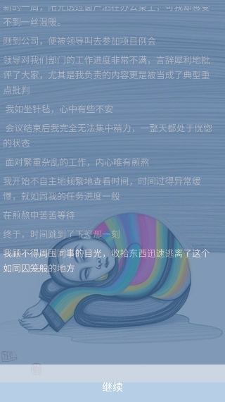每个角色都有着独特的个性与故事,通过和他们互动,我们能进一步了解抑郁症相关的知识以及治疗方式。