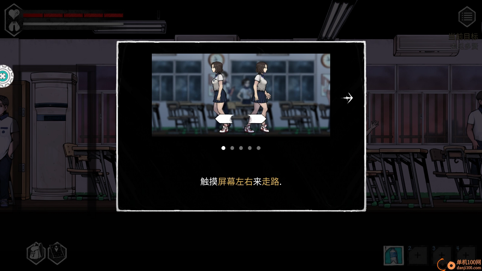 简单的教程内容:在游戏里查看系统提供的角色操控教程,通过触摸屏幕的左右区域来控制角色行走。