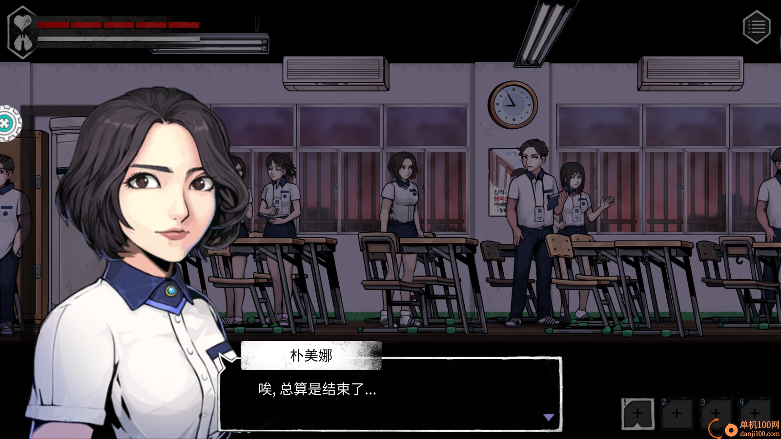 进入游戏后会呈现教室界面,玩家将化身为一名学生,探寻离开世华高中的途径。