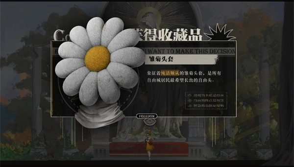 2、遵循正常流程进入第三章,当抵达雕像处,不会再获取火车票,取而代之的是得到“雏菊头套”,此时游戏即刻结束。