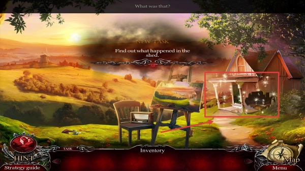 3、按照指引前往小屋,对闪烁光点处展开探索,寻觅与【Findoutwhathappenedintheshed】任务相关的线索。