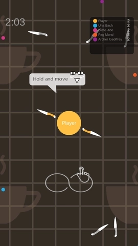 游戏时我们用手指按住屏幕就能操控移动,松开手指便会切换至防御状态;防御状态下所有飞刀的刀尖都会朝向外侧,要是对手使用的是旋转类飞刀,就能把他的飞刀全部打落。这个游戏主要考验我们在进攻与防守之间的切换和掌控能力。