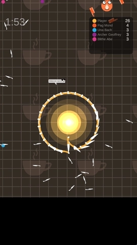 玩家持续拾取新飞刀,借助飞刀拓展自身覆盖范围,这能让自己在游戏里占据显著优势。随着自身范围不断扩大,你不仅具备了自保能力,还能攻击其他玩家,进一步增强实力。尖刺破坏阵形是对抗强敌时的最后手段,一旦被敌人包围,使用这个方法或许能扭转局势、反败为胜。为了争夺榜首位置,玩家们需要更快速地操控圆圈移动,全力收集飞刀。