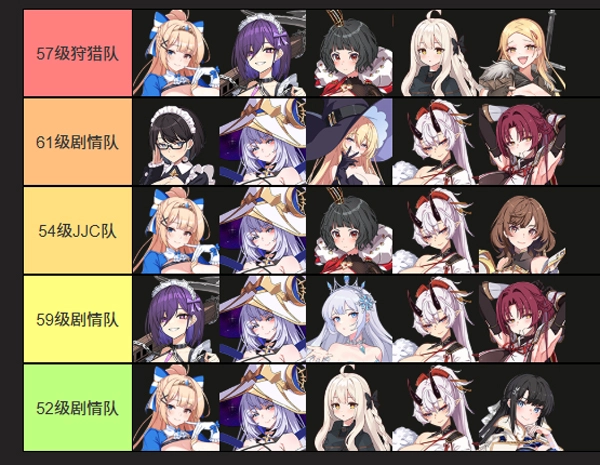 以下所罗列的,是在CBT测试中进度较高的测试视频所使用的队伍。