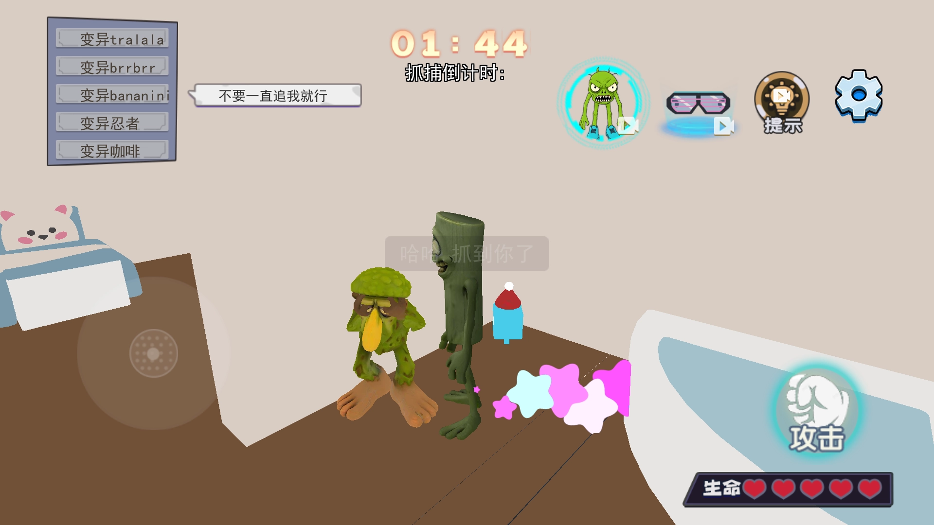 请注意倒计时,时间一分一秒过去,房间会逐渐异兽化,产生路障和干扰物,这会加大搜查与抓捕的难度,所以必须加快节奏来完成任务。