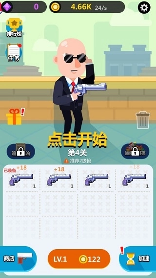 玩家能够借助购买与合成枪支的方式,提高武器等级,强化战斗能力,以此应对后续关卡的难度考验。