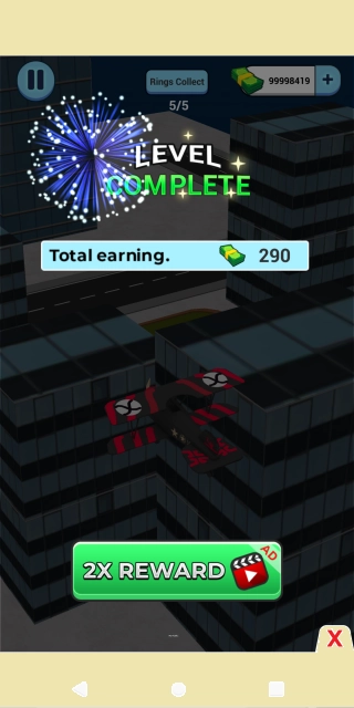 左右滑动实现精准操控:单指滑动即可控制飞机左右移动,灵活避开固定或移动的障碍物,同时尽可能贴近路径中的金币与增益道具,以此实现收益最大化。