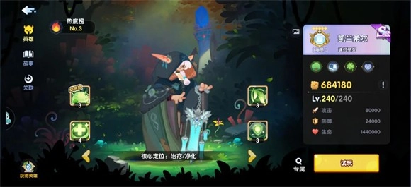 3、其余三个英雄平平无奇只是种族塔需要五个只能矮子里面挑高个,温妲和洛西莉尔刚好有联动输出勉强及格,厄隆迪尔前排抗伤自身输出前期还行,带点小回蓝回血,木系前期值得练的基本就这五个。