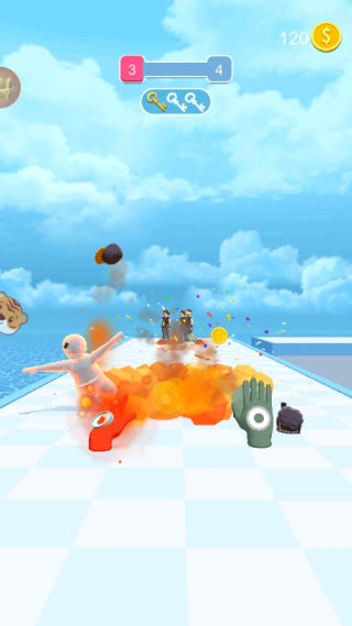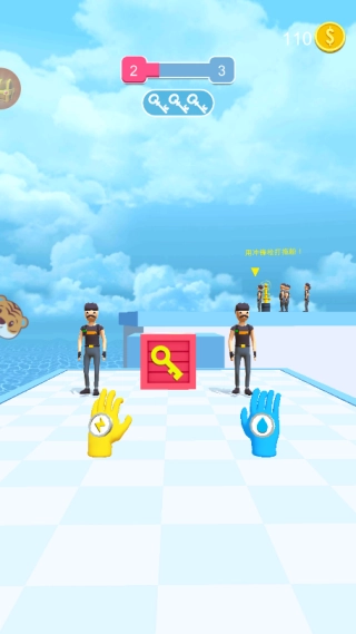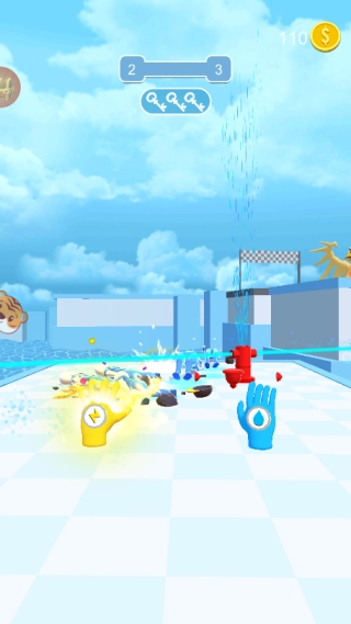 通过关卡奖励解锁火焰、寒冰等元素手套,还能双持不同属性的手套同时装备。