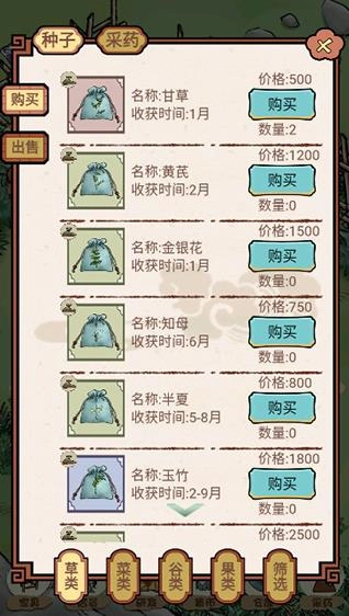 打理属于自己的药园,依据各类药材的生长习性精心照料,最终采收药材。