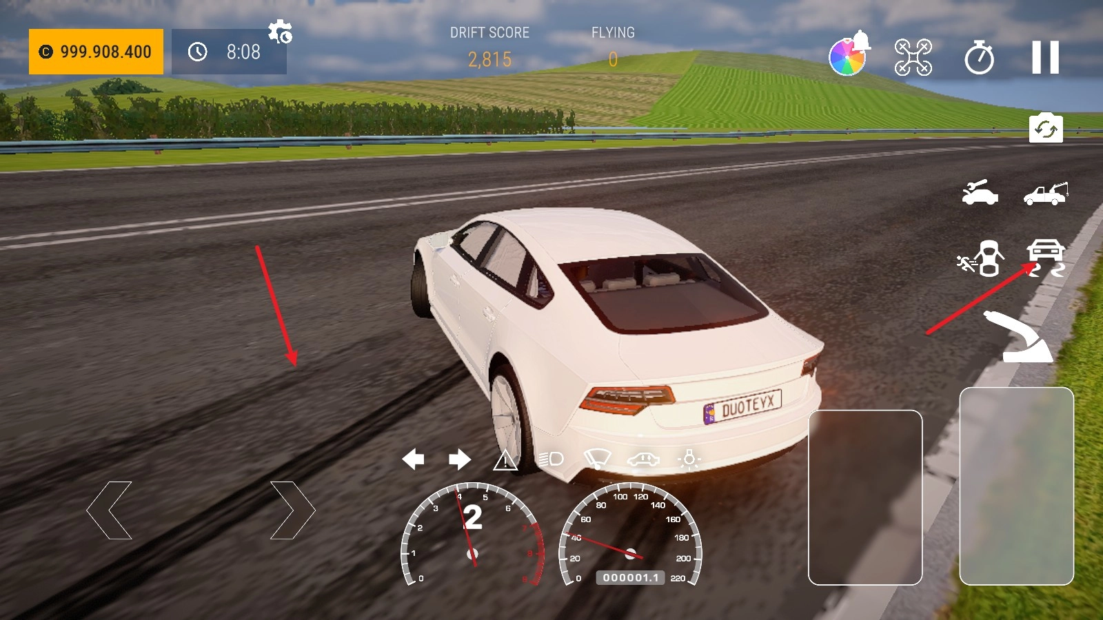 5、右侧可以开启漂移模式,这个模式下,转弯会变成漂移哦!