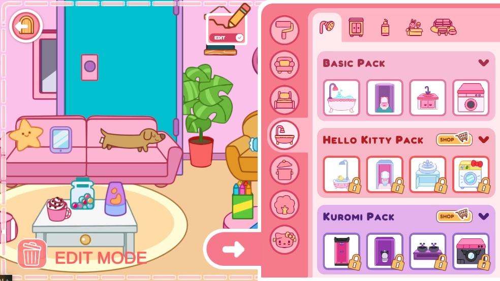 你是否曾幻想过打造一个超级可爱的家?在Hello Kitty与朋友们的奇妙世界里,你能够建造并装饰各式各样的主题房屋,像Hello Kitty的温馨小屋、酷洛米的个性之家、布丁狗的萌趣住所……还有洋溢着节日氛围的圣诞小屋,或是充满惊险刺激的万圣小屋——完全可以按照自己的心意自由搭配组合!
