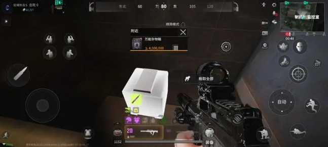 开局选1号复活点,这里离监控室比较近,接着去监控室把大杂藏好,在监控室楼下放个探测球,就能满地图搜索物资了。