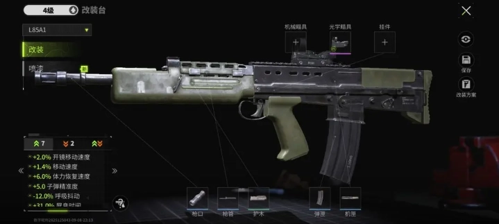 、L85A1:必须要有蓝色的带轨机匣,很容易买。