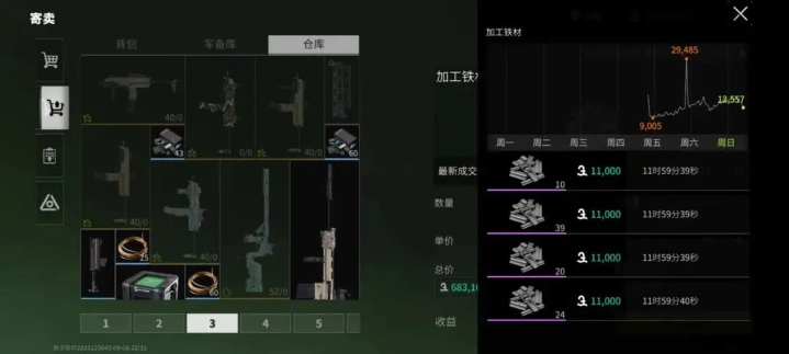 寄卖的价格在周一最低,周四到周日则最高。要是对铁零件有大量需求,同时寄卖市场又不太容易买到,不妨考虑用合理的价格购买箱子来开,不只是旧铁箱可以选择。