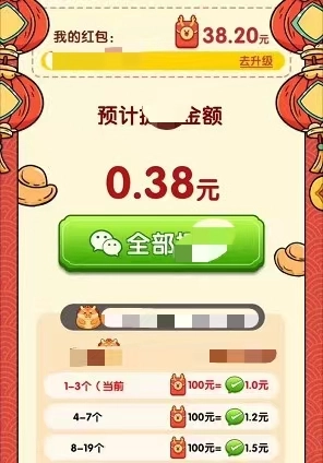在游戏进行时,玩家能够得到红包奖励,红包里的金额是随机的,这让游戏的趣味性和刺激性更强了。