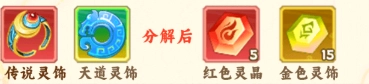 说明:不同级别的灵饰可以分解出不同等级的灵晶,神话灵饰可以分解出3个金色灵品,每有一颗星多分解出5个金色灵品